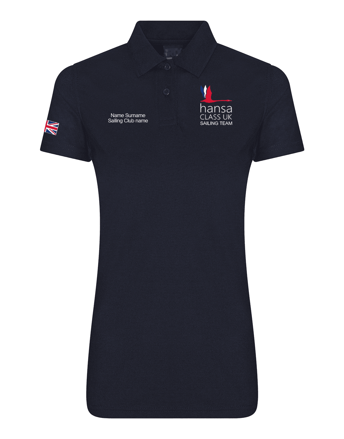Home / HANSA Class UK Team Kit / Ladies Clothing Product Description Women's Softstyle™ double piqué polo, featuring embroidered logo on the front, Union Flag on the right sleeve. Personalised name and club on the right breast and logo printed on the rear. 100% Ringspun cotton. Semi-fitted contoured silhouette with side seam. Contoured welt collar and cuffs. Rolled forward topstitched shoulder. Clean finished reversed placket with reinforced bottom box. 4 colour-matched buttons. Twin needle bottom hem. Fabric 100% Ringspun cotton Weight 177gsm Size S 6/8 M 8/10 L 12 XL 14 2XL 16 Washing Instructions Wash at 40 degrees. Tumble dry medium. Only oxygen bleach/non-chlorine bleach allowed. Do not iron directly onto decoration. Do not dry-clean or remove stains with solvents. Specifications Product Code NHANSAPOLOLADP Weight 0.2kg Customer reviews No reviews left yet Write A Review Sort byMost RecentTop Rated Customer Reviews HANSA Ladies Navy Polo Shirt - PERSONALISED Item in Stock (499 Available) Product Code NHANSAPOLOLADP Size Small Medium Large XL 2XL Name Club £22.50 £18.75 (ex. VAT) Login to add this product to your wishlist.